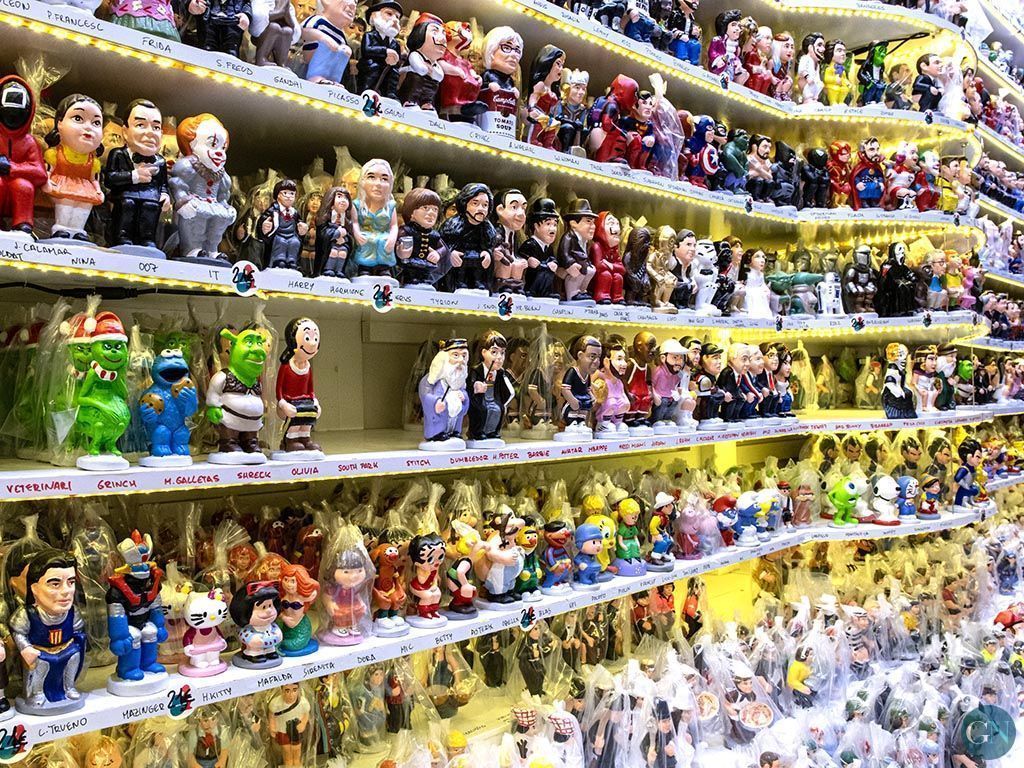 Pel que fa als personatges de ficció de sèries i pel·lícules, també compten amb caganer Avatar, El Monstre de les galetes de Barri Sèsam, Shrek, Grinch, Olivia de Popeye o Harry Potter, amb una nova figura més gran.