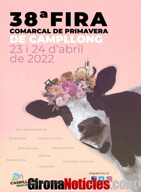 El municipi de Campllong celebrarà aquest cap de setmana la 38a Fira Comarcal de Primavera, un esdeveniment que torna a escena després de dos anys d’aturada a causa de la pandèmia de la Covid-19. Des del seu origen, l’any 1982, la fira ha anat augmentant i diversificant l’oferta de propostes i activitats fins a convertir-se en una activitat referencial dins el món rural i comercial, així com un destacat reclam per al visitant, tenint en compte que en les darreres edicions ha arribat a albergar fins a 30.000 persones.
