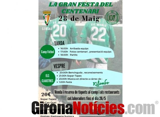 El Club Esportiu Besalú celebrarà aquest dissabte 28 de maig la Gran Festa del Centenari, amb activitats repartides entre el camp de futbol i els Claustres.