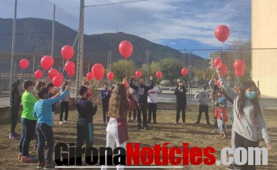 A les 11 h s'ha fet l'enlairament dels globus des dels 4 centres educatius amb el missatge comú "1,2,3 envieu els globus ben amunt perquè portin amb el vent aquest missatge arreu del món".