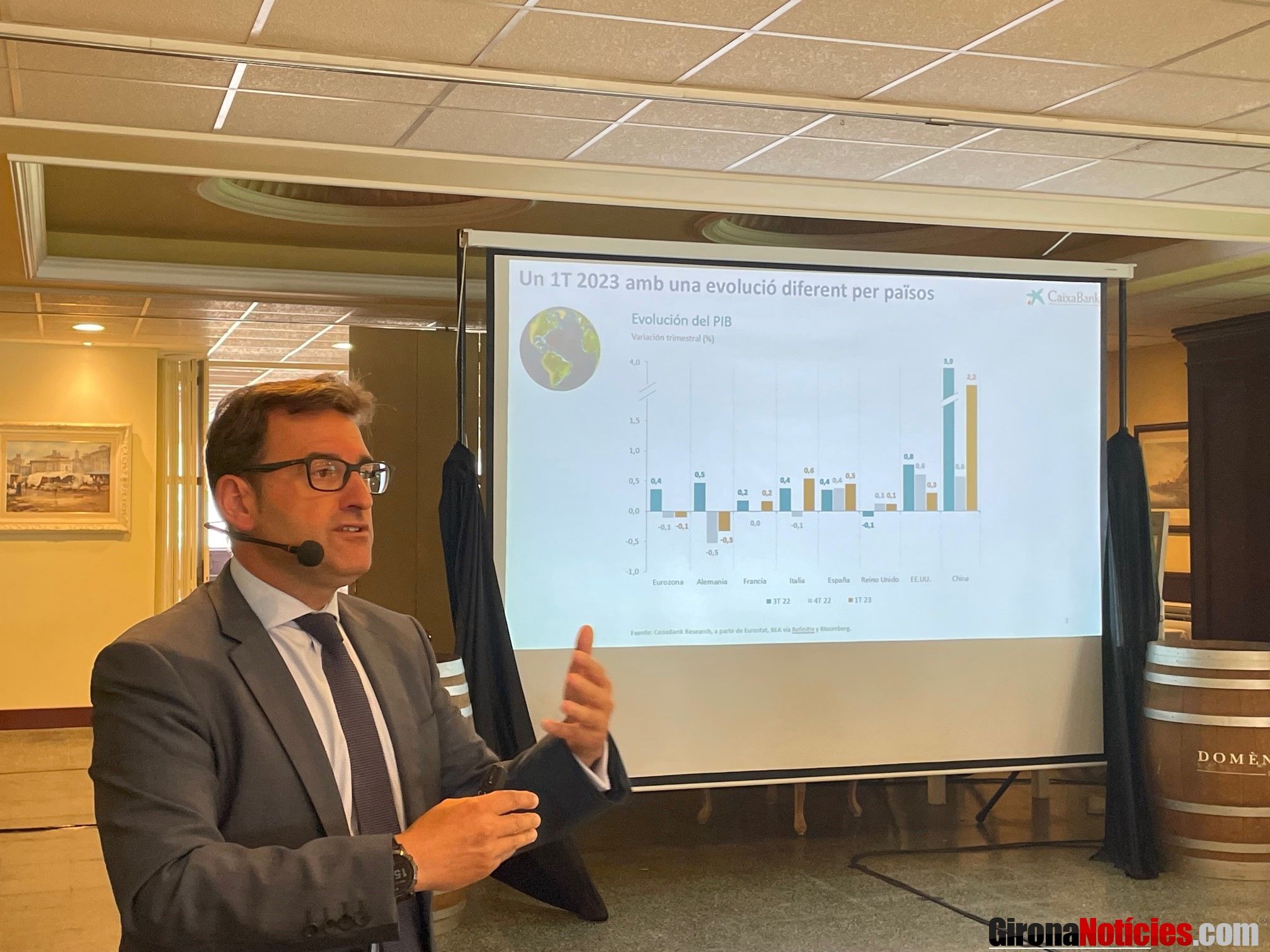 Josep Mª Gonzàlez, el director territorial de CaixaBank a Catalunya, ha participat avui al Dinar Cambra de Tàrrega, un esdeveniment organitzat per la Cambra de Tàrrega. En la seva conferència titulada "Entorn econòmic, mercats i sector bancari", Gonzàlez ha abordat diversos aspectes relacionats amb l'economia actual.