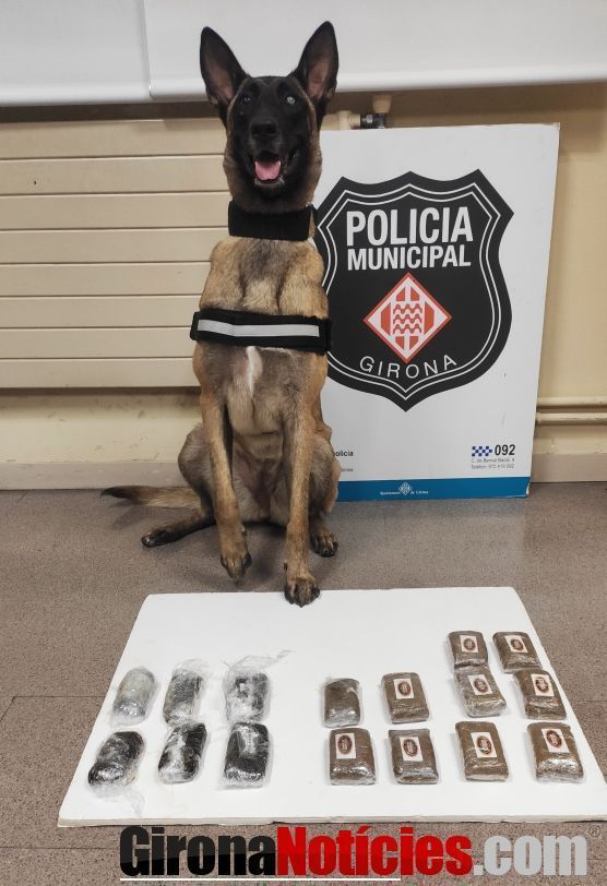 La gossa Laika de la unitat canina de la Policia Municipal de Girona va ajudar a localitzar 1.580 grams d'haixix en un equipatge. Els fets van tenir lloc ahir a l'estació de busos de Girona.