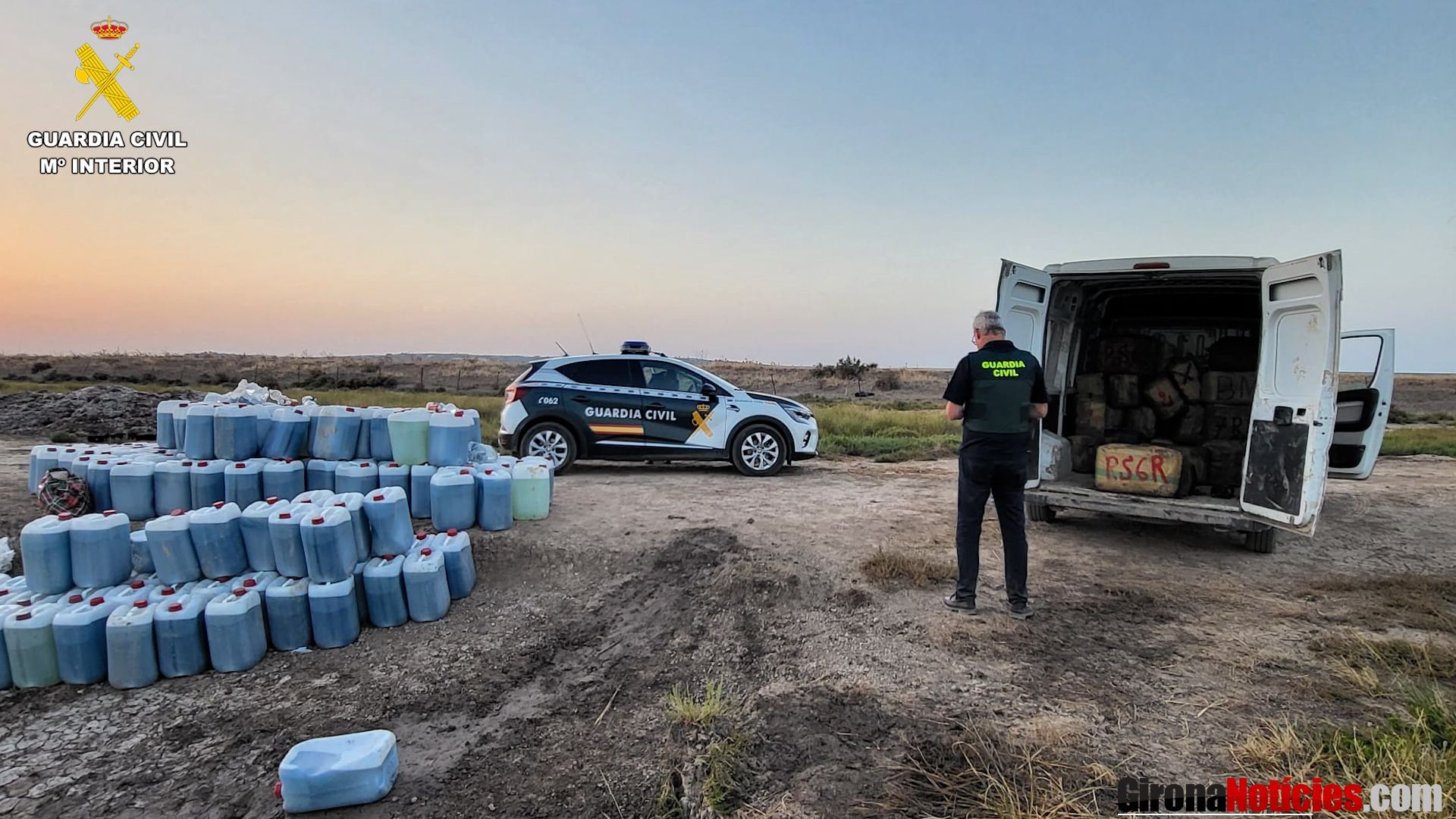 Las autoridades incautaron dos furgonetas cargadas con 90 paquetes de hachís, con un peso total de 3.372 kilogramos, ambas furgonetas habían sido robadas previamente. Además, se confiscaron 3.200 litros de combustible destinados al abastecimiento de embarcaciones, la escopeta utilizada en el tiroteo -también robada-, así como munición.