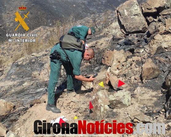 Una vez localizado el punto exacto donde se inició el fuego y realizado un estudio de su evolución, la Guardia Civil recabó numerosos datos y manifestaciones y obtuvieron diferentes indicios que permitieron concretar que el incendio se había producido al golpear contra una piedra el ahoyador de una máquina retro-araña que trabajaba en la zona.