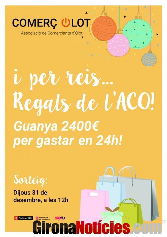 L'Associació de Comerciants d'Olot acaba de posar en marxa una nova campanya. Amb l'entrada al mes de desembre i amb motiu de les festes de Nadal, comença "I per Reis, regals de l'ACO" perquè els clients del comerç de la ciutat puguin optar a un gran premi mentre fan la seva compra per aquests propers dies.