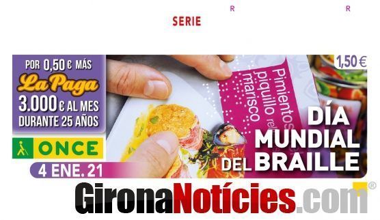 El Dia Mundial del Braille protagonitza el cupó de l'ONCE del dilluns, 4 de gener. Cinc milions i mig de cupons celebraran que amb sis punts la vida de les persones cegues és més accessible.