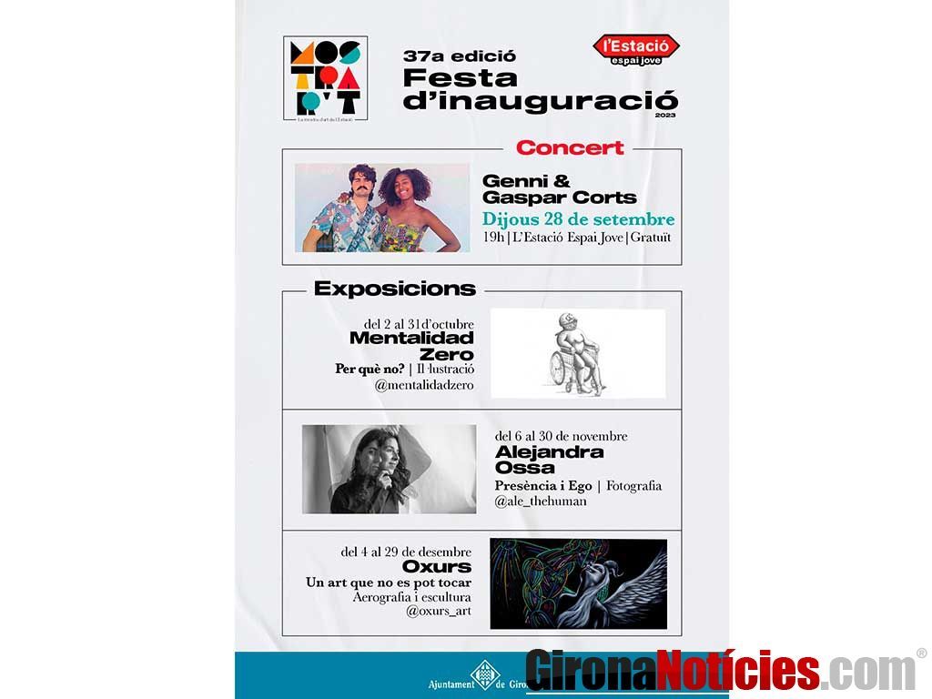 Un concert a càrrec de Genni & Gaspar Corts marcarà l'inici de la 37a edició de Mostrar't a L'Estació Espai Jove demà, dijous 28 de setembre. La festa d'obertura de l'exposició començarà a les 19 hores i també oferirà una petita mostra de les tres propostes artístiques que formaran part d'aquesta edició.